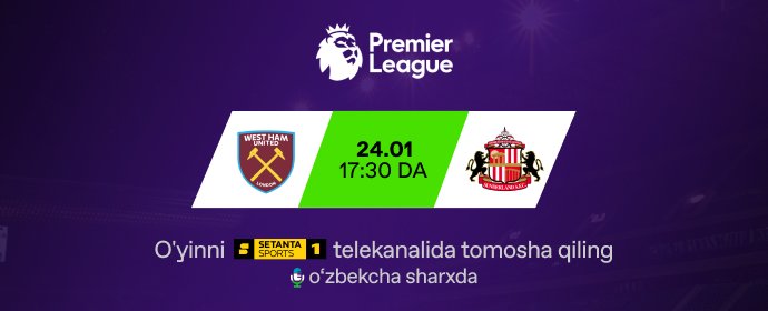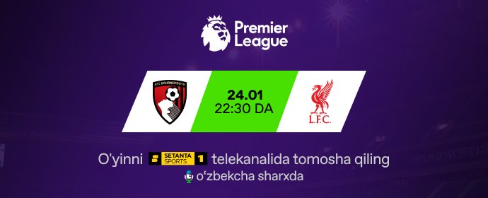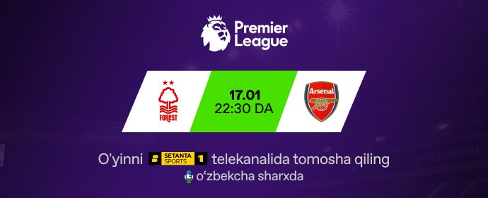 O‘yinni bugun soat 17:30 da Setanta Sports 1 telekanalida o'zbekcha sharxda...
