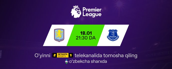 O‘yinni bugun soat 19:00 da Setanta Sports 1 telekanalida o'zbekcha sharxda...