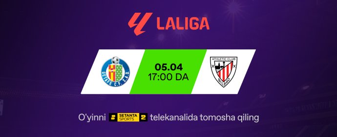 Uchrashuvni bugun soat 23:45 da "Setanta Sports 1" telekanali orqali jonli ...