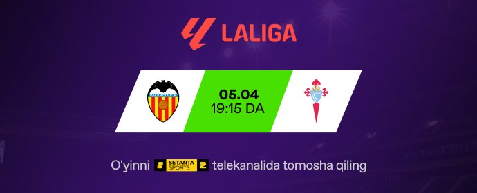 Uchrashuvni bugun soat 19:15 da "SETANTA SPORTS 2" telekanali orqali jonli ...