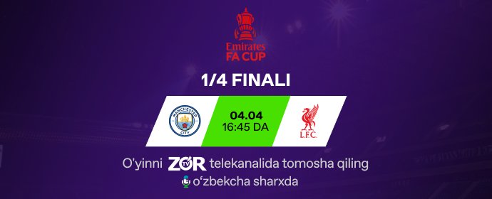 Manchester Siti - Liverpul. Uchrashuvni bugun soat 16:45 da "ZO‘R TV" telek...