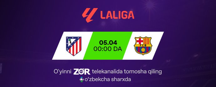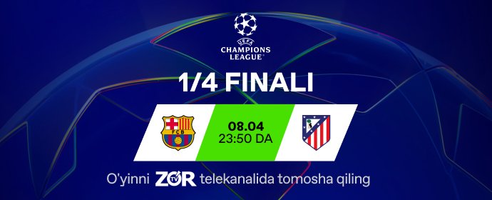1/4 final: "Barselona" - "Atletiko Madrid." O‘yinni kechasi soat 23:50 da "...