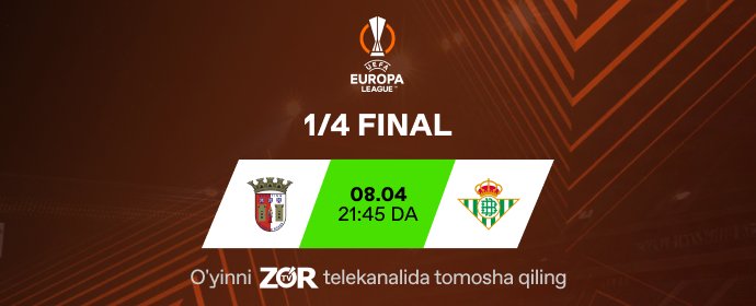 Yevropa ligasi 1/4 finali: Braga - Real Betis. O‘yinni bugun soat 21:45 da ...