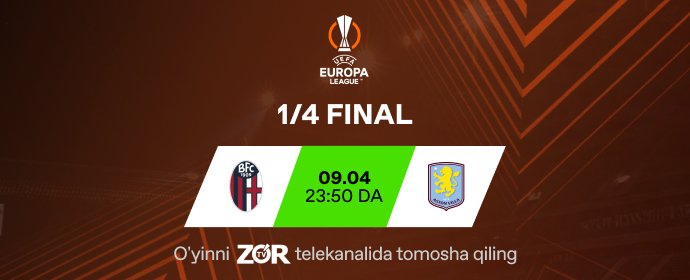 Bolonya - Aston Villa. O‘yinni bugun soat 23:50 da "ZO‘R TV" telekanalida j...