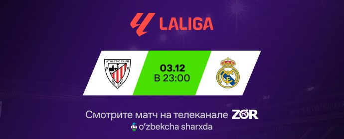 Смотрите матч в 01:00 на телеканале ZO’R TV с узбекскими комментаторами!...